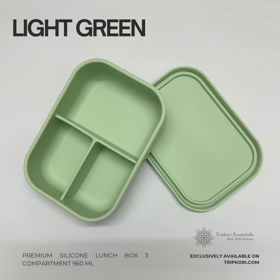 Premium Silicone Tiffin Box – 3 compartment Light Green